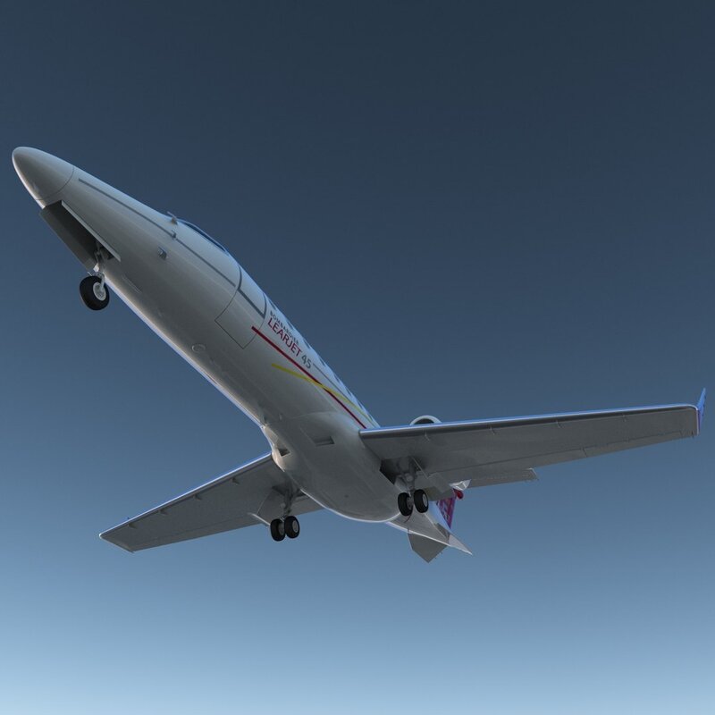 This Bombardier Learjet 45 Rigged is a high quality, photo real model that will enhance detail and realism to any of your rendering projects. The model has a fully textured, detailed design that allows for close-up renders, and was originally modeled in 3ds Max 2012 and rendered with V-Ray. Fidelity is optimal up to a 2k render.