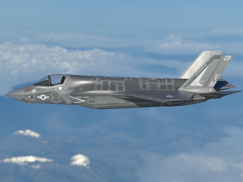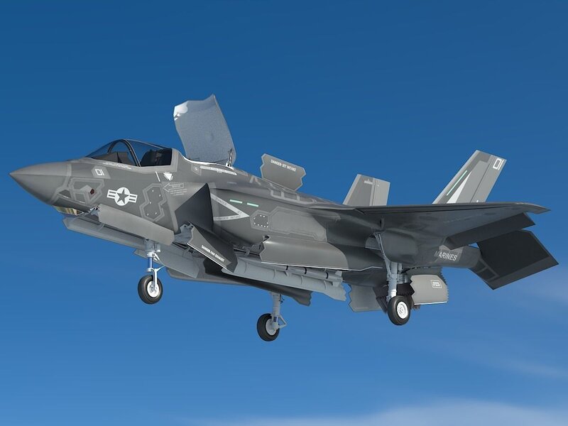 RIGGING: The engine is rigged, it can be bended like real F35B! Not joke! All movable parts had been rigged, including canopy, three landing gears, bulk covers, intake/exhaustion covers of vertical engine, engine covers, ailerons, empennages and rudders. Note: If you want to rotate the red bended arrows to drive movable parts, have better choose Object space in Axis Orientation (rotate tool configuration).
