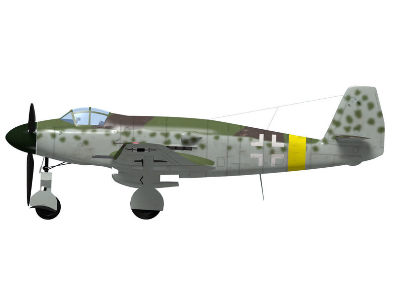 This fighter was planned based on the prototype me309 built by Messerschmitt during WW2. No real aircraft was built. The model's Landing gear is divided into flight and landing state parts.