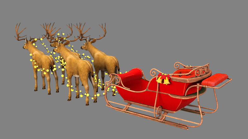 Santa Claus Sleigh and deer 3D model