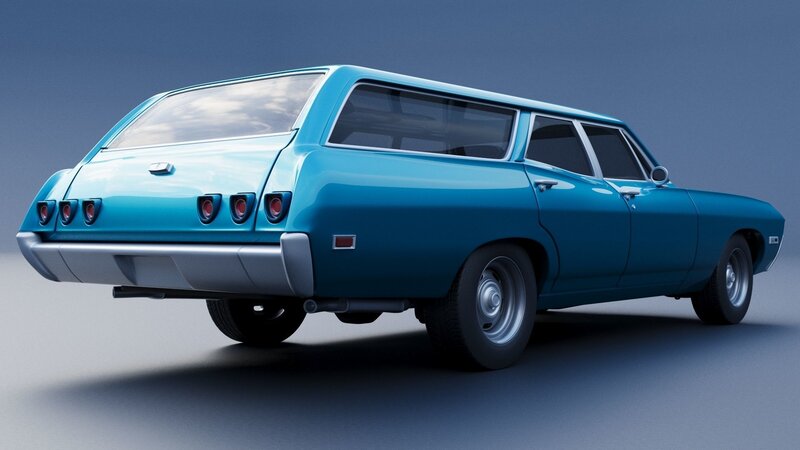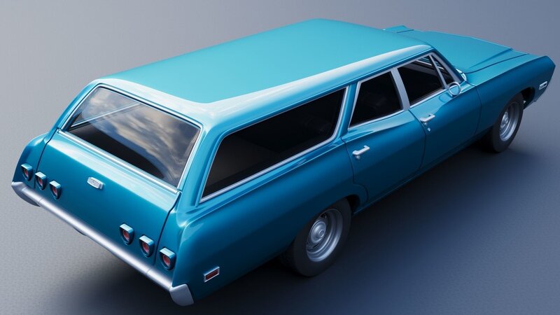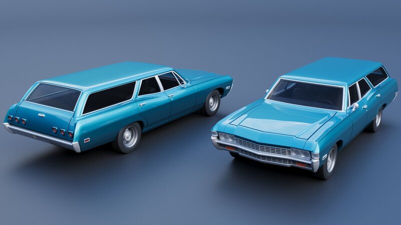 The model includes •Body •Body without hood •Hood •Body divided into 3 parts •Grille •Engine •Interior •Chassis •Wheels •Tires •Windows and glass for headlights and taillights