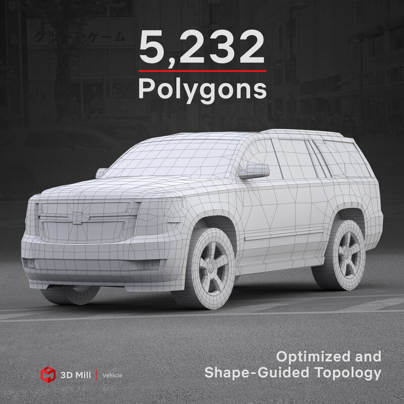 Chevrolet Tahoe 2015, LowPoly 3D Model