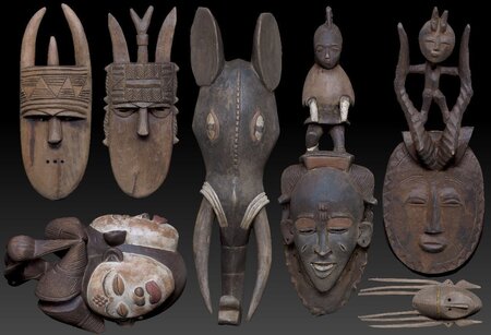 Carved Wooden Mask - 3D Model Collection (7 items). Fotoreal: Higly detailed texturing & mesh