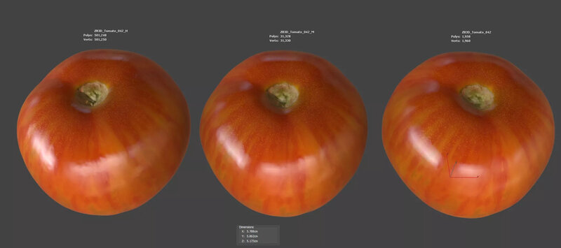 Enhance your visualizations, product designs, or still-life projects with this ultra-realistic 3D tomato model. Meticulously photogrammetry scanned and textured, it boasts multiple levels of detail (2K, 31K, 501K polycounts) for close-ups and broader scenes.