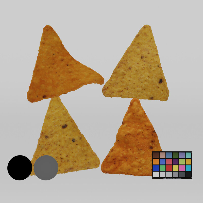 You will receive 4 × photorealistic digital Tortillia (2×chili peper/ 2×salt) with 8k texture maps. It has organized non-overlapping uv`s and a decent topology which supports further editing and a lot of detail. With the 3D model (formats: fbx, obj) there is a diffuse, roughness, displacement, sss and normal map.