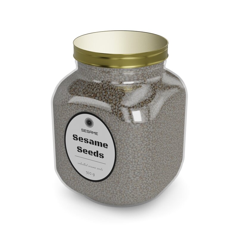Sesame Seeds: Encased in a traditional glass jar with a metal lid, these sesame seeds are a must-have for any culinary enthusiast. The jar is adorned with a vintage-inspired label that showcases a sprig of sesame plants and the words Sesame Seeds in elegant script. With a net weight of 300 grams, these unhulled sesame seeds are perfect for toasting and sprinkling over Asian dishes or homemade bread.