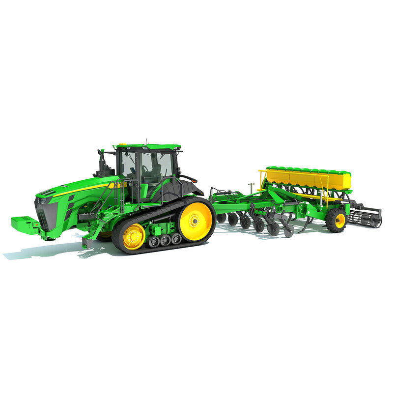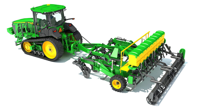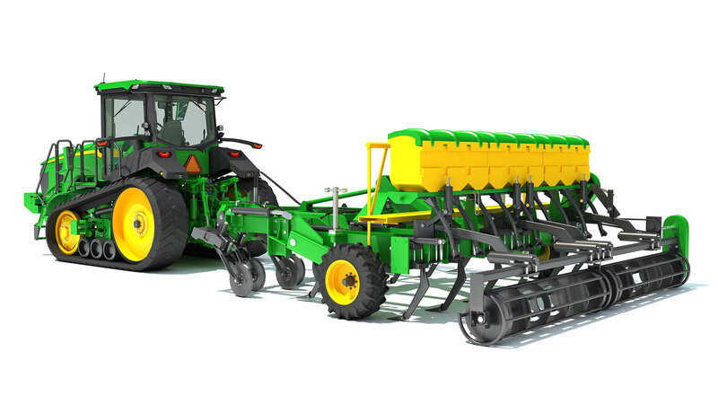 Quality 3d model of tractor with seed drill.