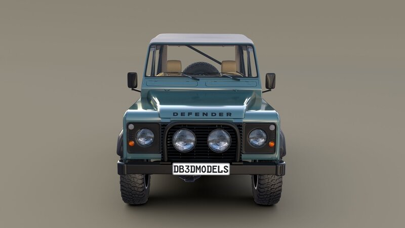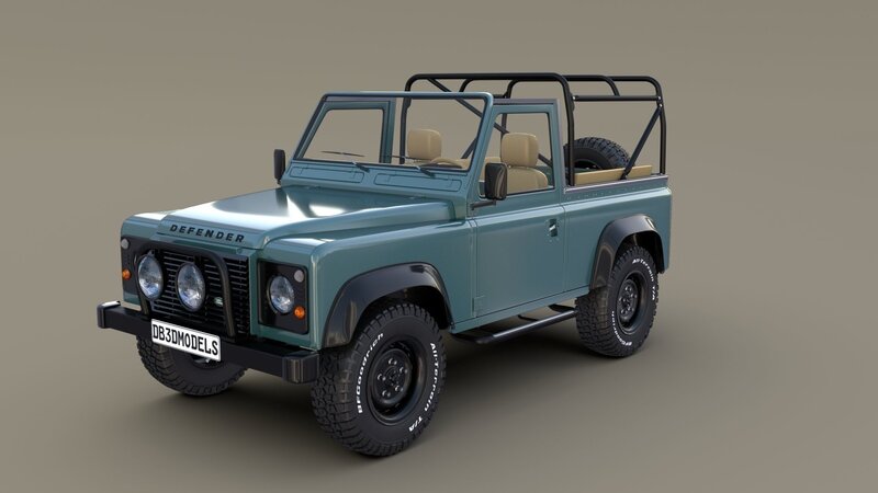 1985 Land Rover Defender 90 with interior 3D Model Collection consisting of 4 variants of the same car, with 4 different tops, as can be seen in the rendered images.