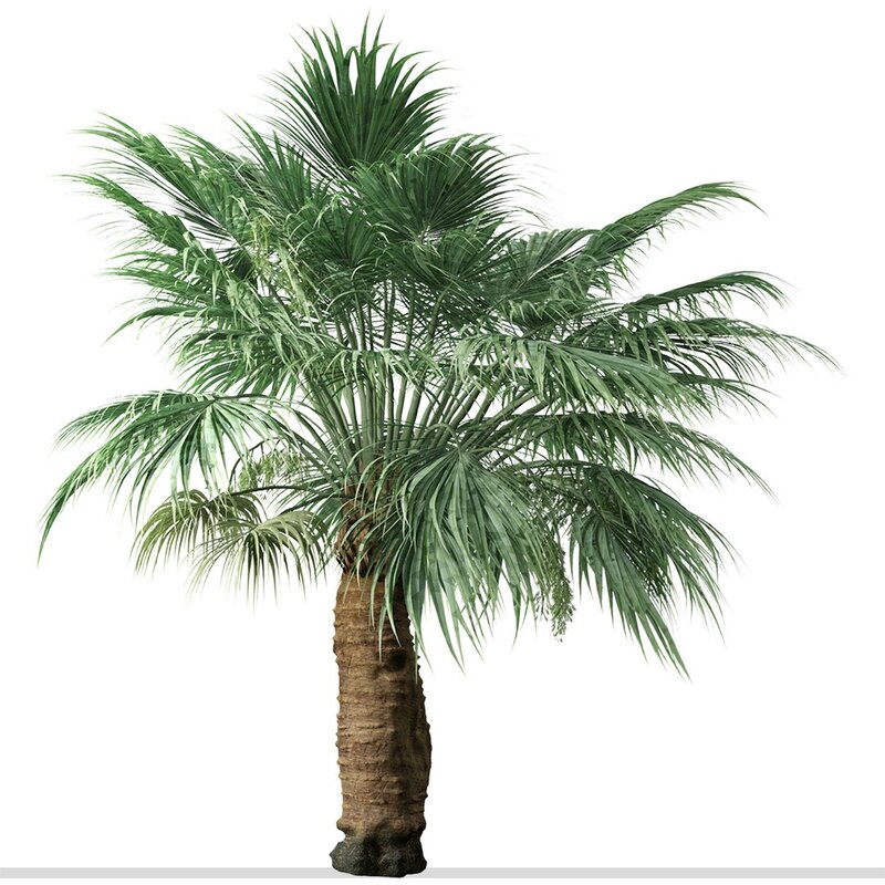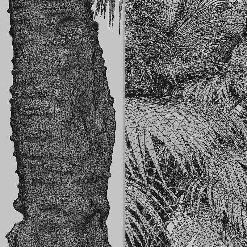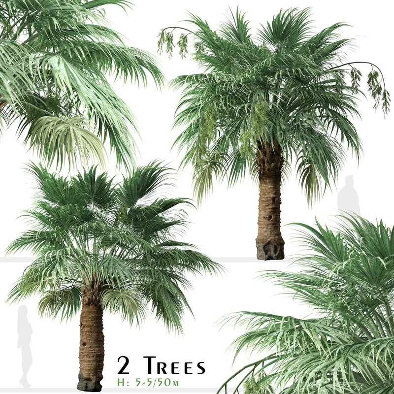 2 different Blue Hesper Palm trees in the scene.