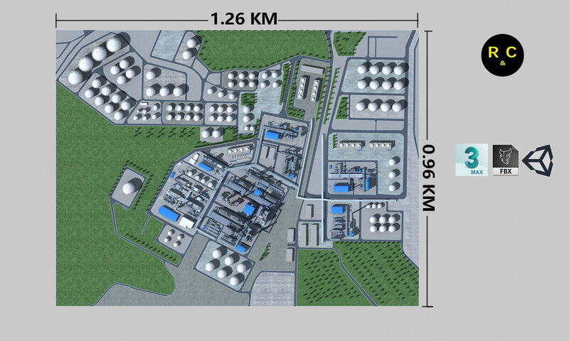 The scene contains a very large complete Refinery. The model is created based on the real Refinery environment. poly is low and clean. Model can be use for real time VR, AR in unity or unreal , render pictures , render video.