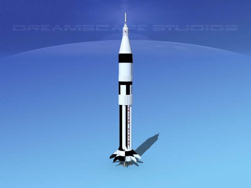 This model is built as near to scale as possible. It includes a lot of external detail and detailed engines. The stages may be separated in in-flight animations. This model includes the first or main stage, the second stage and the service module and command module. It includes the abort tower on the command module. It comes in several formats.